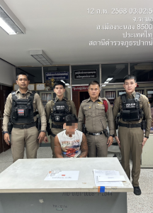 วันนี้ 12 กุมภาพันธ์ 2568 เวลาประมาณ 00.30น. ภายใต้การอำนวยการของ พ.ต.อ.สมบัติ ชุมพล ผกก.สภ.ปากน้ำ พ.ต.ท.อสัน ชอบงาม รอง ผกก.ป.สภ.ปากน้ำ พ.ต.ท.เกรียงศักดิ์ ลิ่มมังกูร สวป.สภ.ปากน้ำ ได้สั่งการให้ ร.ต.ท.จงรักษ์ สังขอินทร์ รอง สว(ป.)ฯ/ร้อยเวร20 พร้อมด้วย 221 , 121 ผลการปฏิบัติ ว.20 นาย ปาย โซ(Paing soe) อายุ 28 ปี สัญชาติเมียนมา โดยกล่าวหาว่า 1 มียาเสพติดให้โทษประเภท 1 เมทแอมเฟตามีน (ยาบ้า) ไว้ในครอบครองโดยผิดกฎหมาย 2.เป็นผู้ขับขี่รถจักรยานยนต์เสพสารเสพติดให้โทษประเภทที่ 1 เมทแอมเฟตามีน (ยาบ้า) โดยผิดกฎหมาย 3.เสพยาเสพติดให้โทษประเภทที่ 1 เมทแอมเฟตามีน (ยาบ้า) โดยผิดกฎหมาย สถานที่จับกุม ถนนสาธารณะสี่แยกตู้ยามสะพานปลา ม.1 ต.ปากน้ำ อ.เมือง จ.ระนอง ของกลาง 1.ยาบ้า จำนวน 10เม็ด ชนิดกลมแบนสีส้ม ตัวอักษร wy 2.ใบยืนยันผลการตรวจสารเสพติดในร่างกาย จาก ร.พ.ระนอง