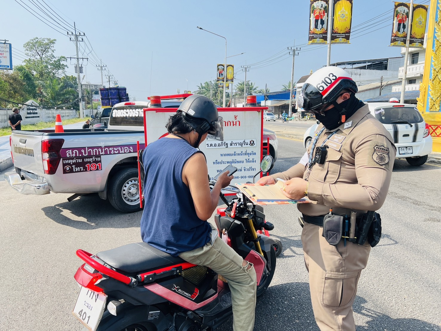 วันนี้ 3 ก.พ. 2568 เวลา 09.00- 11.00 น. ภายใต้การอำนวยการของ พ.ต.อ.สมบัติ ชุมพล ผกก.สภ.ปากน้ำ สั่งการให้ พ.ต.ท.อสัน ชอบงาม รอง ผกก.ป.สภ.ปากน้ำ ร.ต.อ.อภิรัฐ สำราญรื่น รอง สว.จร.สภ.ปากน้ำ ข่ายจราจร ร่วม – กอ.รมน. ตั้งจุดตรวจกวดขันวินัยจราจรและกวดขันรถพ่วงข้างตามมติของคณะทำงาน บริเวณ หน้าสถานีตำรวจภูธรปากน้ำ ม.1 ต.ปากน้ำ อ.เมือง จ.ระนอง