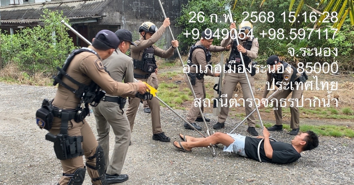 วันนี้ 26 ก.พ. 68 เวลา 15.00 น.ขอรายงานผลการปฏิบัติดังนี้ ภายใต้การอำนวยการของ พล.ต.ต.ธนวัตร วัฒนกุล ผบก.ภ.จว.ระนอง พ.ต.อ.สุทธิ นิติอัครพงศ์ รอง ผบก.ภ.จว.ระนอง (ปป) สั่งการให้ พ.ต.อ.สมบัติ ชุมพล ผกก.สภ.ปากน้ำ นำโดย พ.ต.ท.อสัน ชอบงาม รอง ผกก. ป.ฯ หัวหน้าครูฝึก พ.ต.ท.เกรียงศักดิ์ ลิ่มมังกรู สวป.สภ.ปากน้ำ/ครูฝึก ได้นำข้าราชการตำรวจ สภ.ปากน้ำ จำนวน 25 นาย ร่วมประกาศเจตนารมณ์ที่จะไม่รับของขวัญและของกำนัลทุกชนิดจากการปฏิบัติหน้าที่ (No Gift Policy) ทุกสายงาน และฝึกแบบฝึก ท่าพระราชทานหมู่แถวชิด และ ฝึกยุทธวิธีการใช้ไม้ง่าม,อาวุธปืนไฟฟ้า taser,เครื่องพันธนาการ ในการเข้าสถานการณ์ระงับเหตุบุคคลวิกลจริตคลุ้มคลั่ง พร้อมซักซ้อมแผนเผชิญเหตุบุคคลคุ้มคลั่ง โดยใช้ไม้ง่าม บริเวณข้าง สภ.