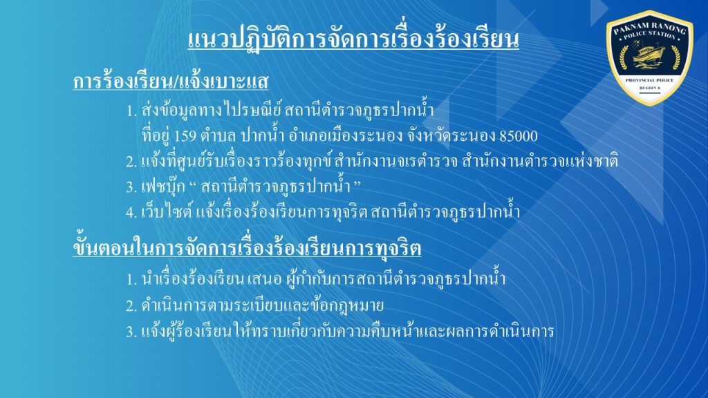 ช่องทางแจ้งเรื่องร้องเรียนการทุจริต